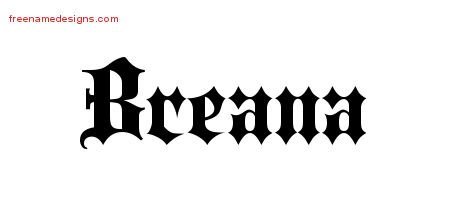 This free name graphic with old english lettering is printed with the custom name Breana.