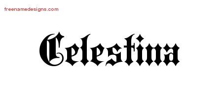 Free name graphic Celestina – Print out this old English name tattoo design.