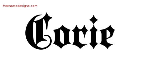 This free name graphic with old english lettering is printed with the custom name Corie.