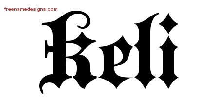 This free name graphic with old english lettering is printed with the custom name Keli.