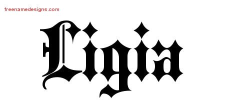 Free name graphic Ligia – Print out this old English name tattoo design.