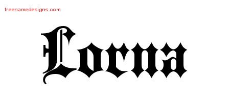 Free name graphic Lorna – Print out this old English name tattoo design.