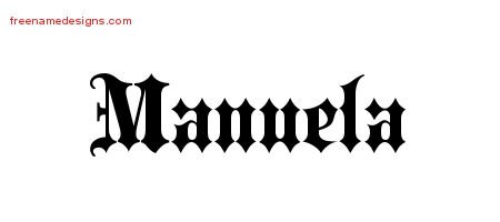 Free name graphic Manuela – Print out this old English name tattoo design.
