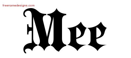 Free name graphic Mee – Print out this old English name tattoo design.