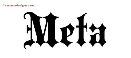 This free name graphic with old english lettering is printed with the custom name Meta.