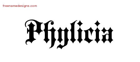 Free name graphic Phylicia – Print out this old English name tattoo design.