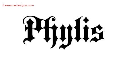 Free name graphic Phylis – Print out this old English name tattoo design.