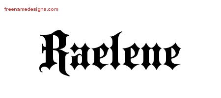 Free name graphic Raelene – Print out this old English name tattoo design.