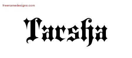 Free name graphic Tarsha – Print out this old English name tattoo design.