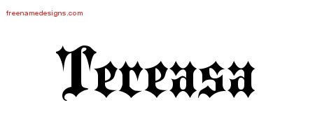 Free name graphic Tereasa – Print out this old English name tattoo design.