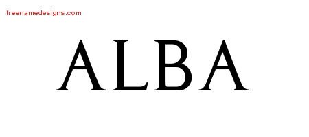 This free name graphic with regal victorian lettering is printed with the custom name Alba.