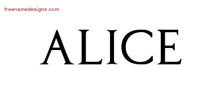 This free name graphic with regal victorian lettering is printed with the custom name Alice.