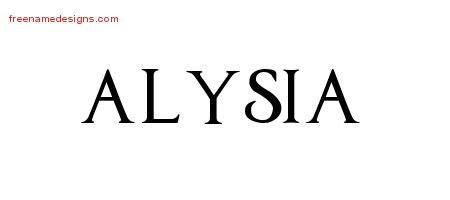 This free name graphic with regal victorian lettering is printed with the custom name Alysia.