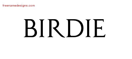 This free name graphic with regal victorian lettering is printed with the custom name Birdie.