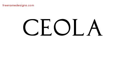 This free name graphic with regal victorian lettering is printed with the custom name Ceola.