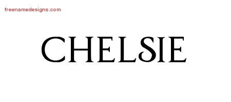 This free name graphic with regal victorian lettering is printed with the custom name Chelsie.