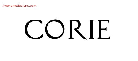 This free name graphic with regal victorian lettering is printed with the custom name Corie.