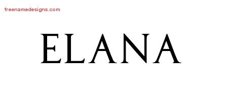 This free name graphic with regal victorian lettering is printed with the custom name Elana.