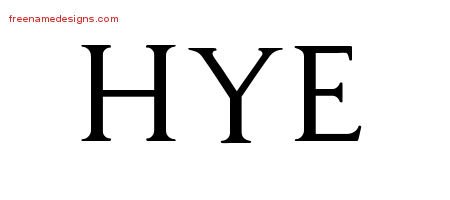 This free name graphic with regal victorian lettering is printed with the custom name Hye.