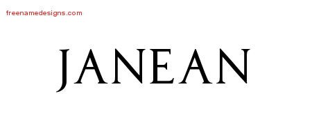 This free name graphic with regal victorian lettering is printed with the custom name Janean.