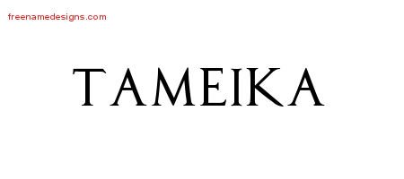 Print image Tameika – Print out this regal Victorian name tattoo design.