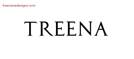 Print image Treena – Print out this regal Victorian name tattoo design.