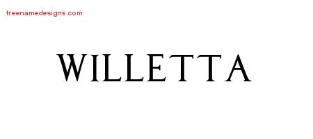 Print image Willetta – Print out this regal Victorian name tattoo design.