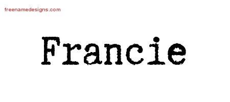 Free name graphic Francie – Print out this typewriter name tattoo design.